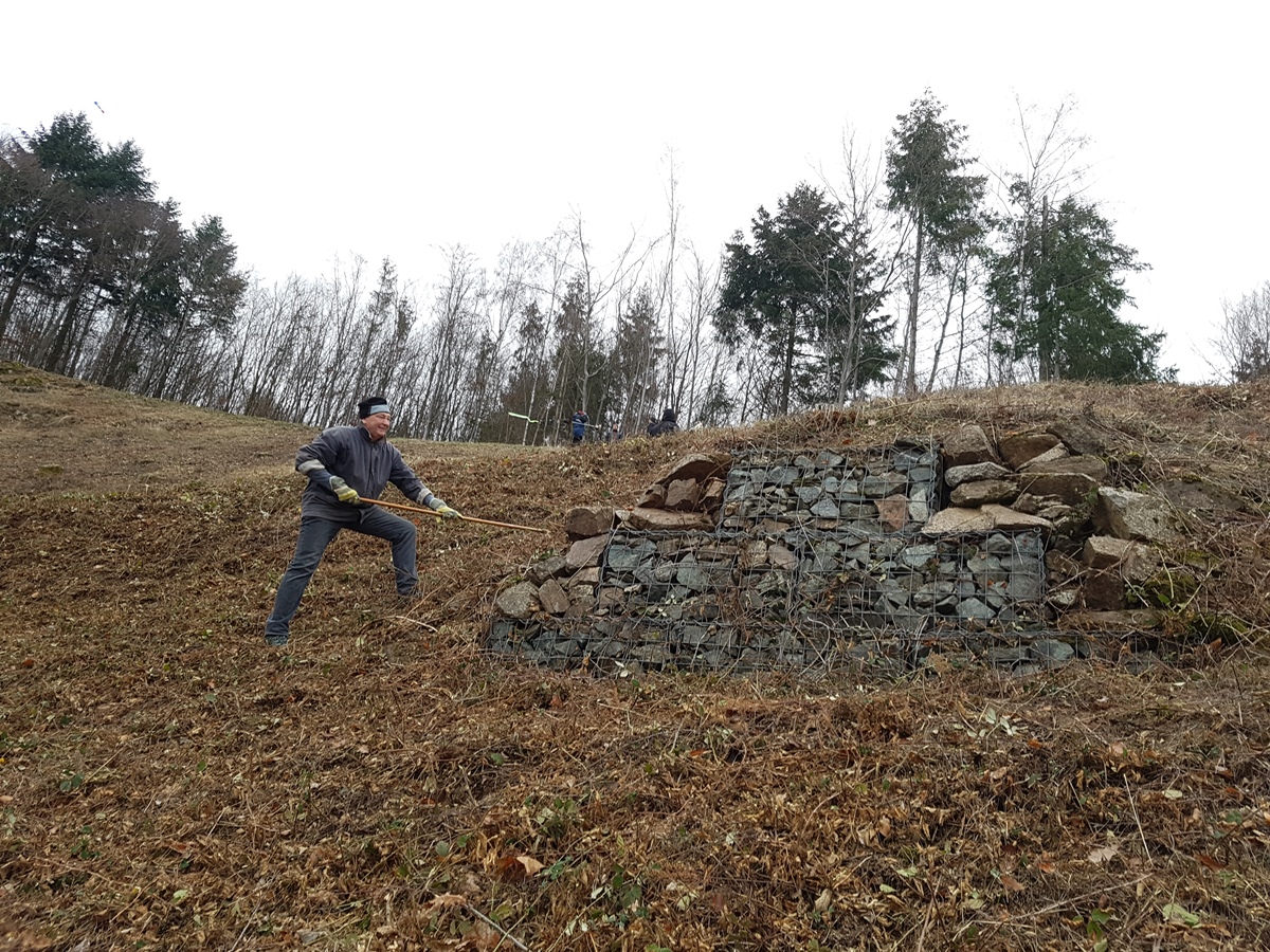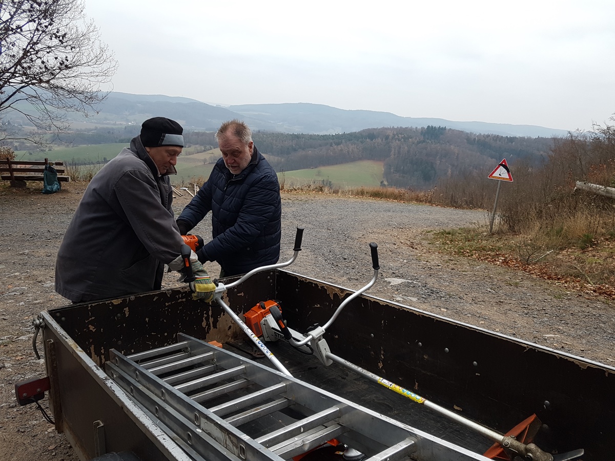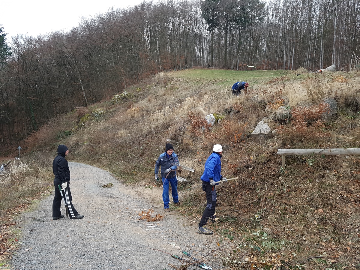 Die Steilgelände beidseitig des Weges wurden von der hoch motivierten Helferschar aufs Gründlichste geputzt, und Frank hat eine neue Windfahne aufgehängt.