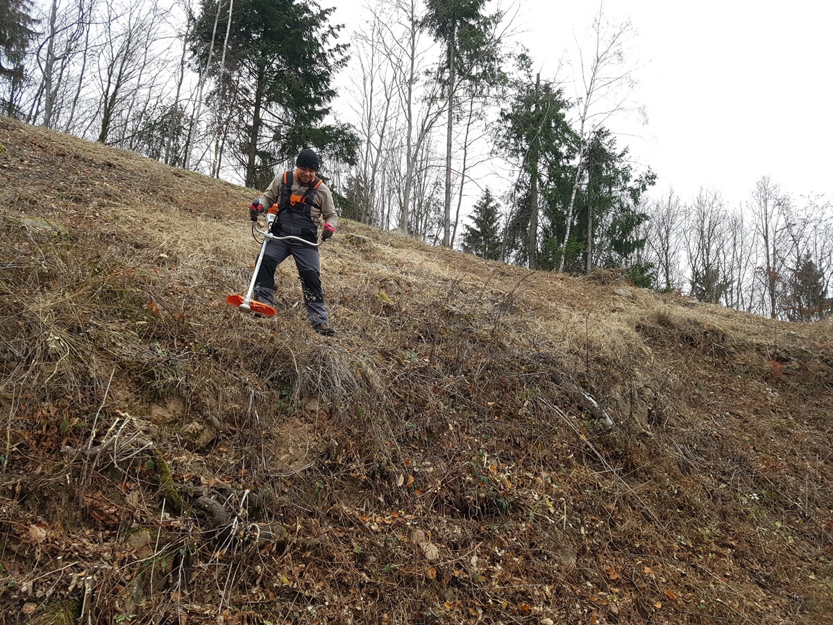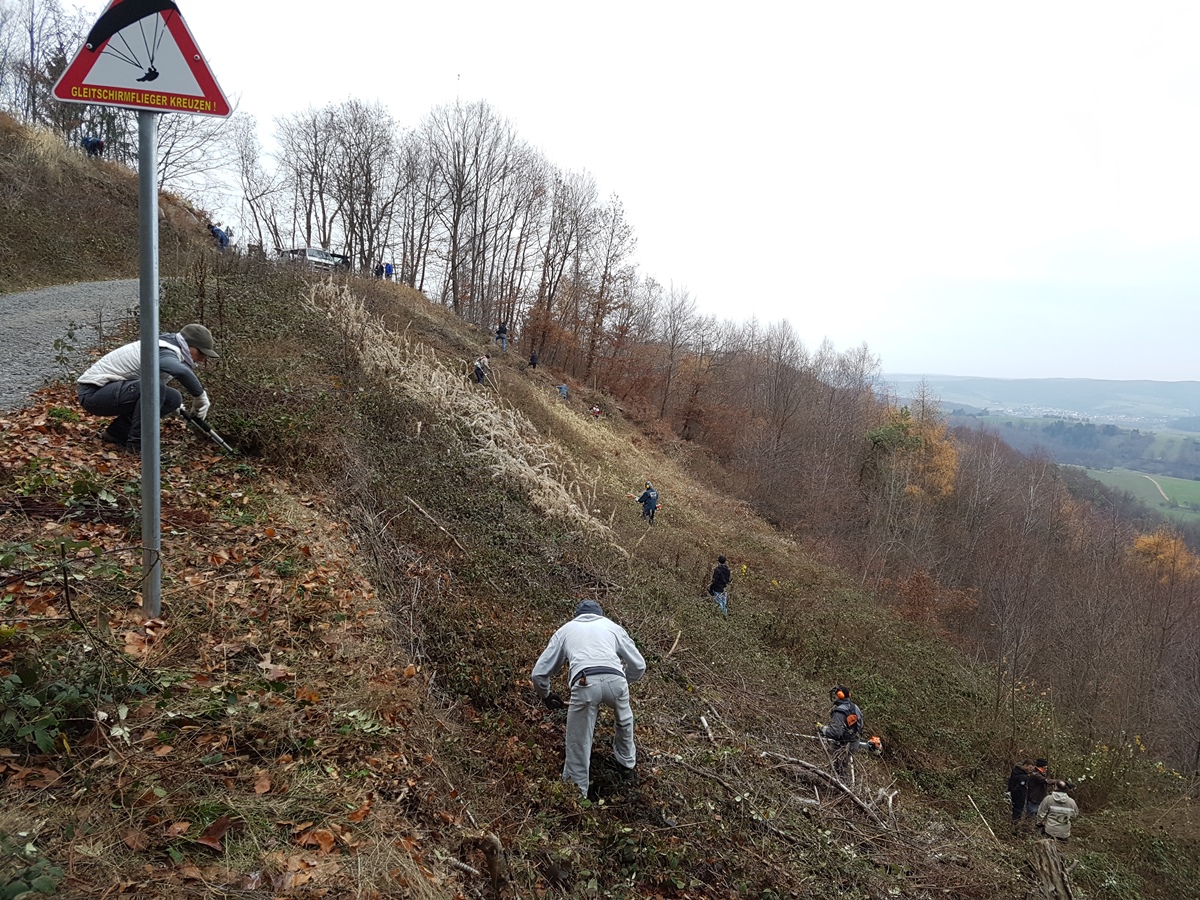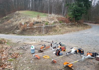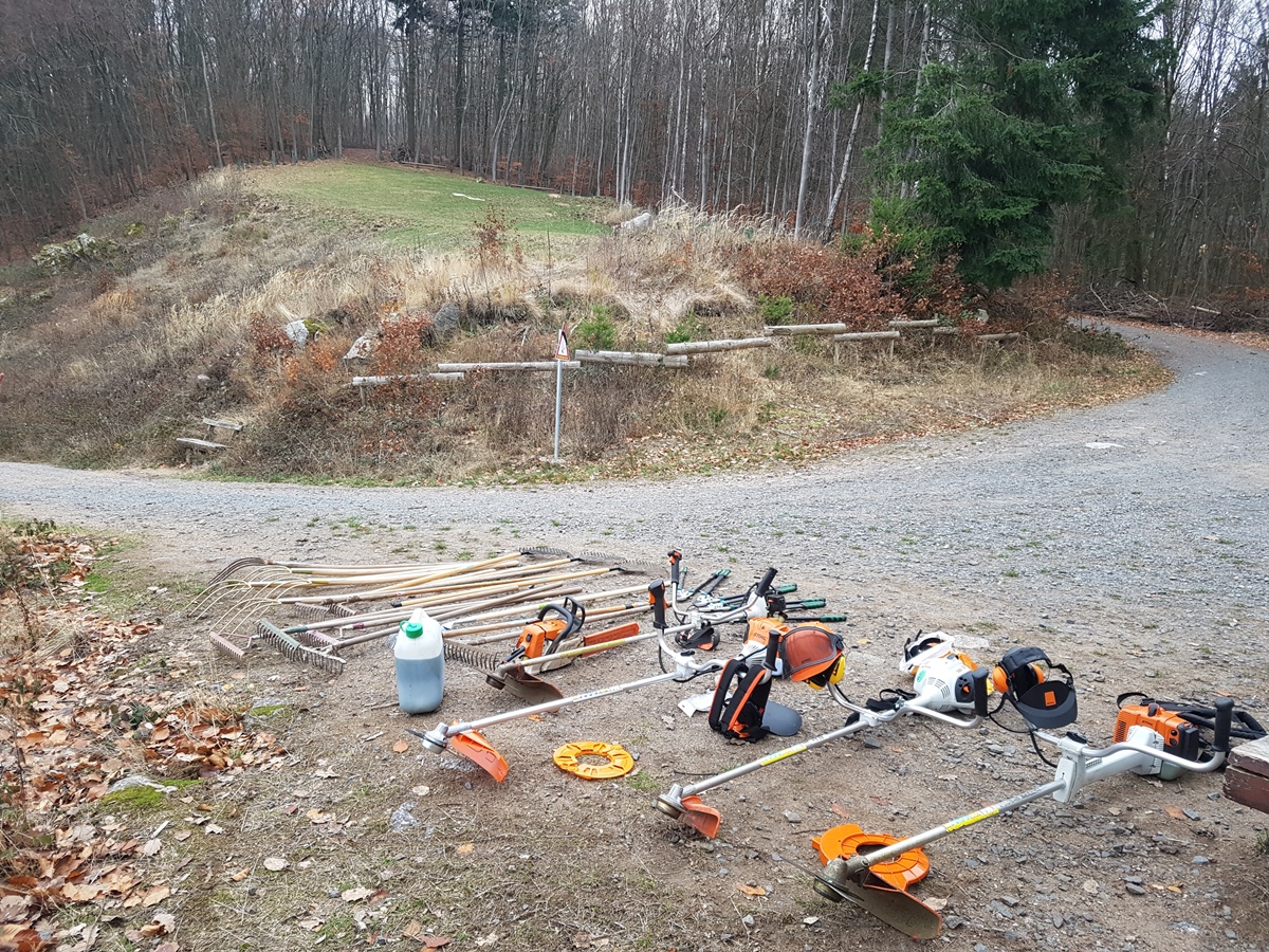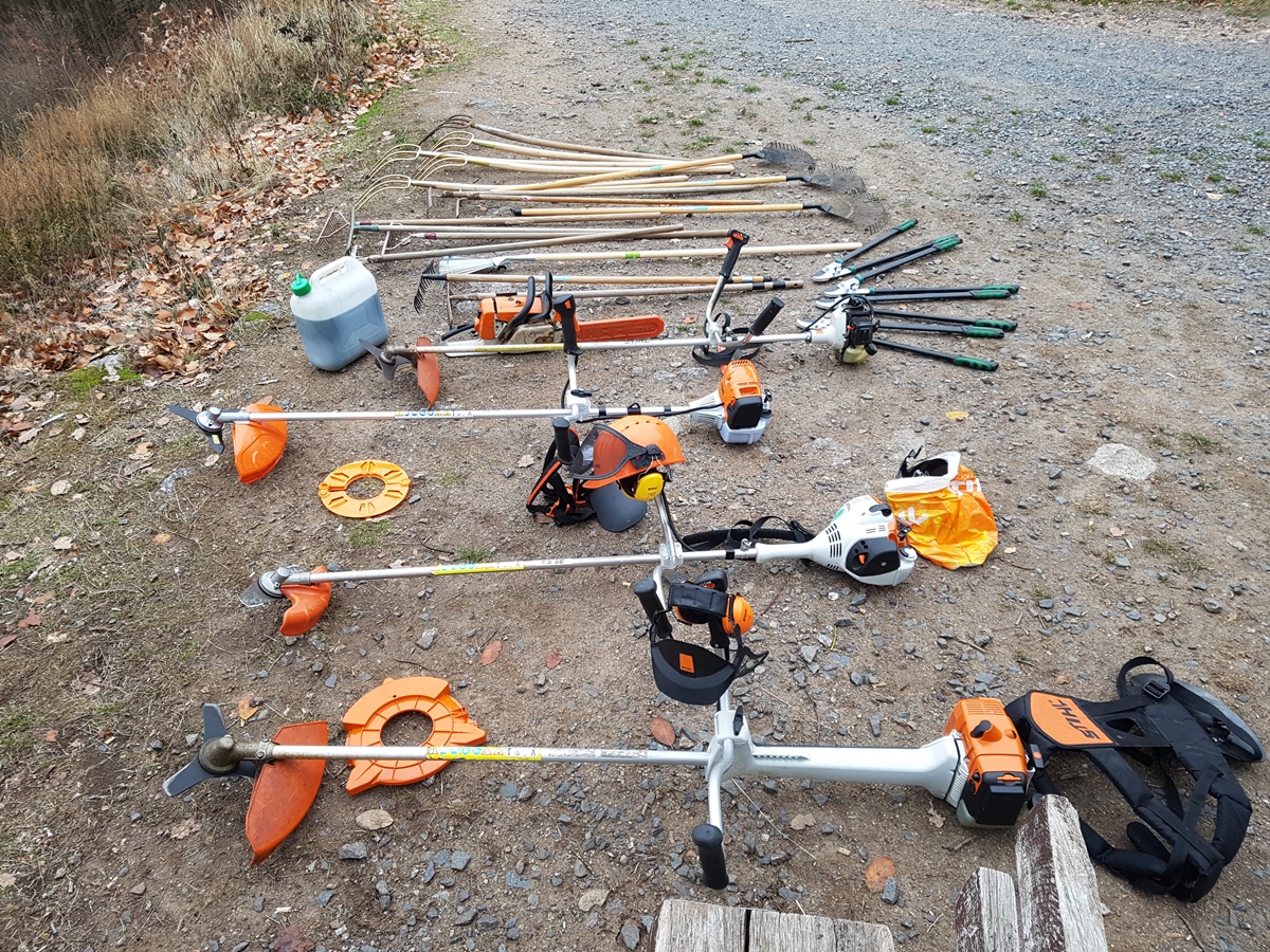 Es waren sechs Freischneider gleichzeitig im Einsatz, dazu etliche Astscheren, Rechen und Heugabeln.