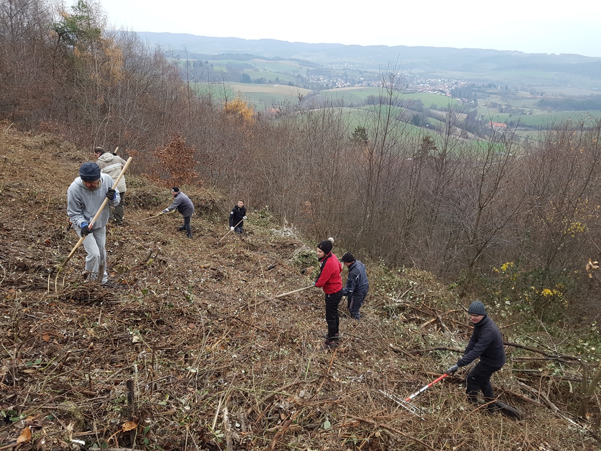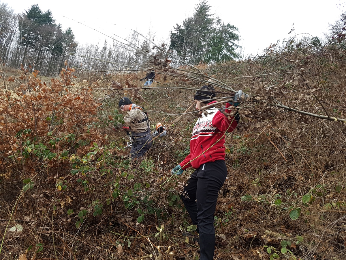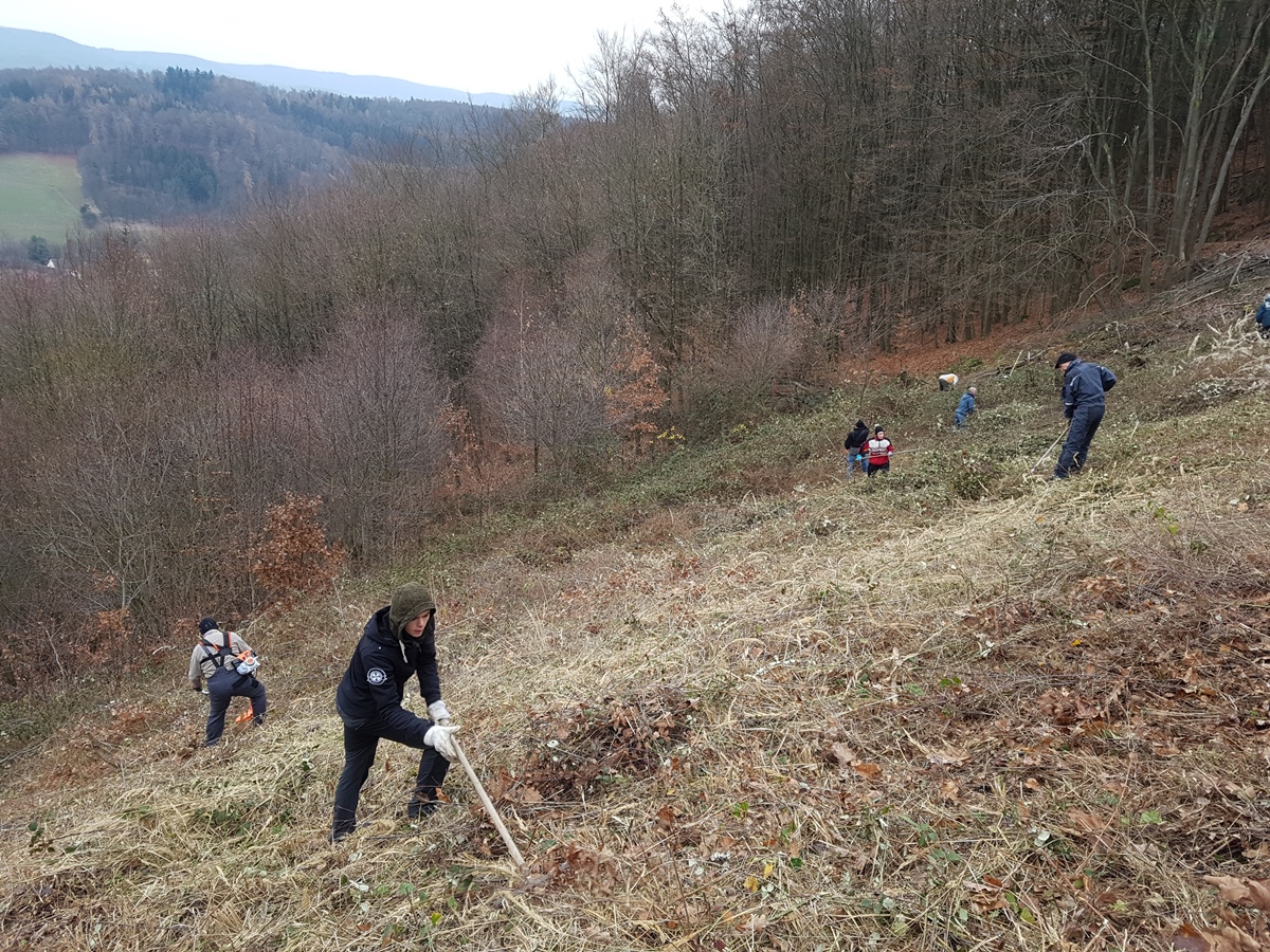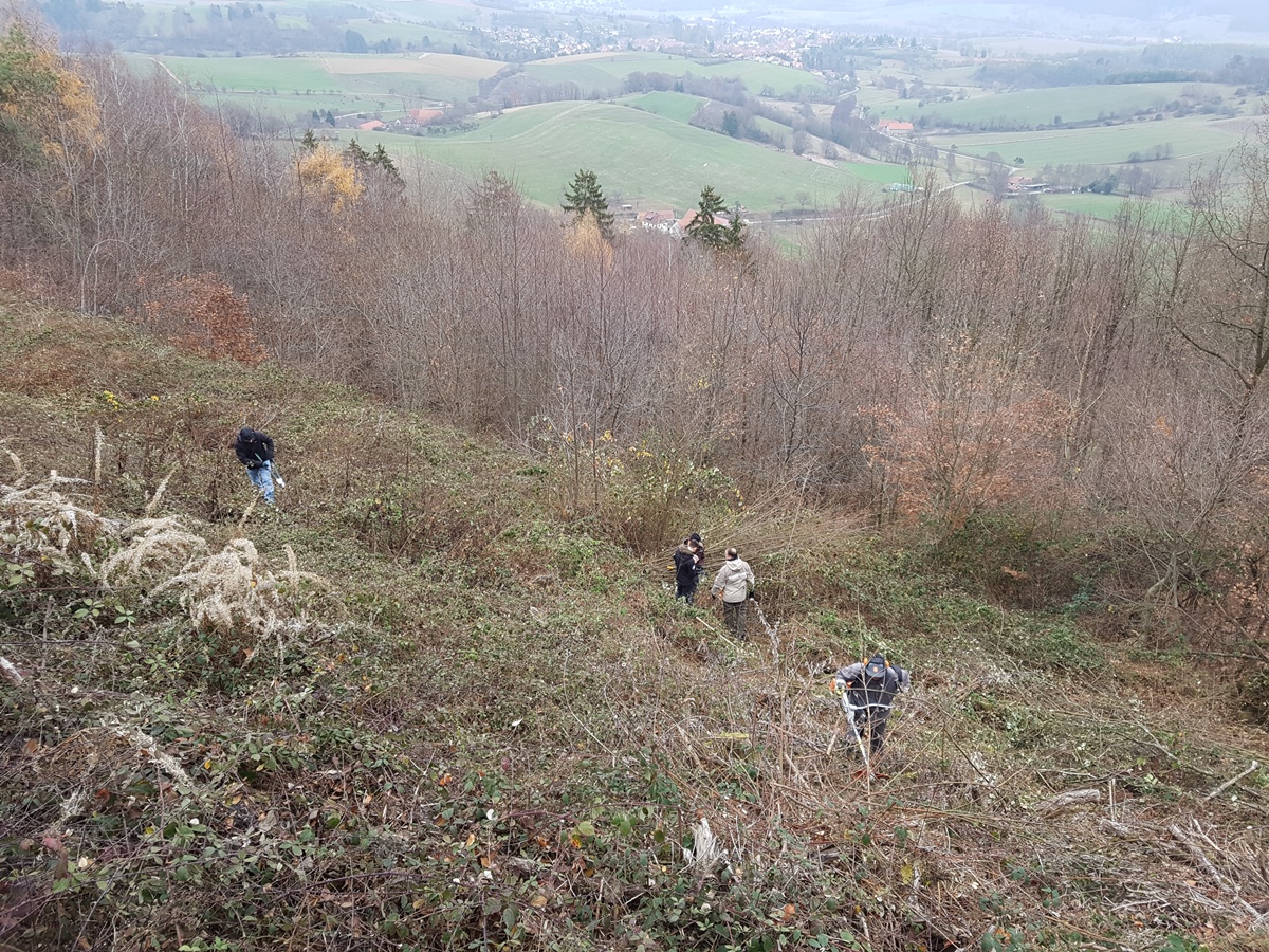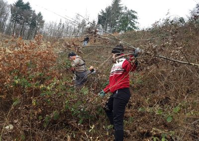 Es waren sechs Freischneider gleichzeitig im Einsatz, dazu etliche Astscheren, Rechen und Heugabeln.