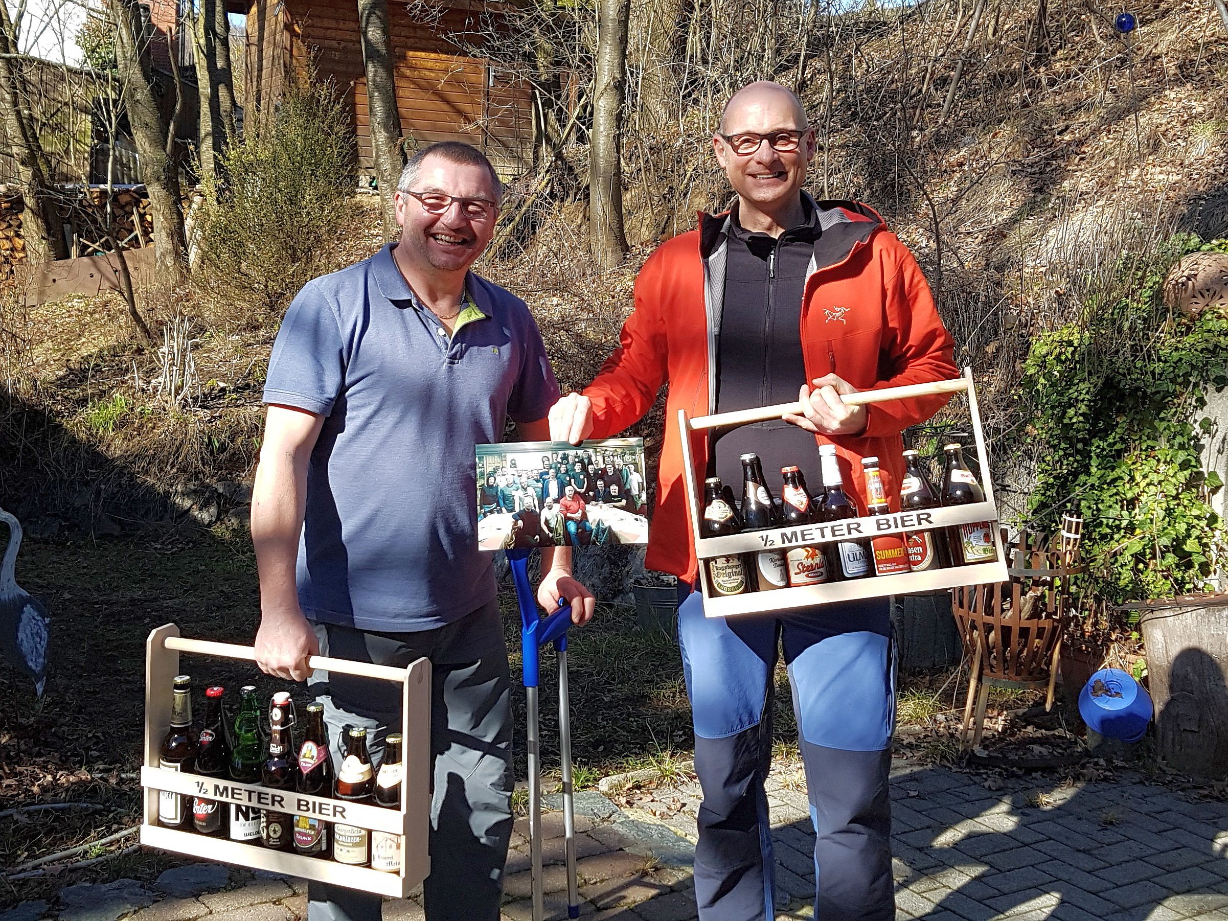 Auf Anregung der Versammlung wurde dem momentan erkrankten 1. Vorsitzenden am Sonntag eine Kollektion stärkender Medizin und das Gruppenbild vom Freitag überreicht.