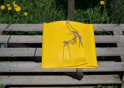 Er wird zusammengerollt und in ein Rohr unter der Bank am Landeplatz-Anzeiger geschoben.