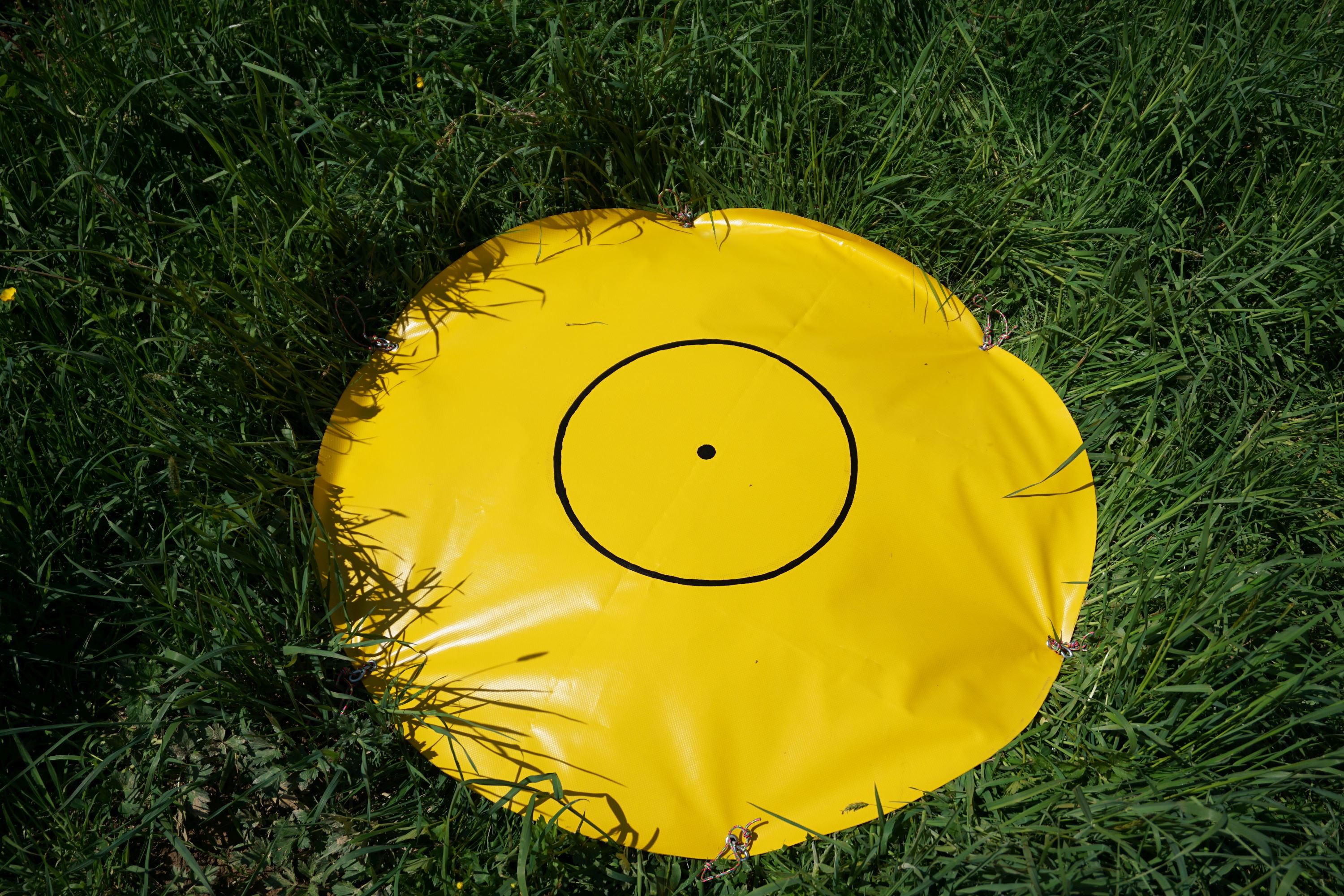 Damit das Treffen nicht so einfach ist, hat er nur 1m Durchmesser. 😉