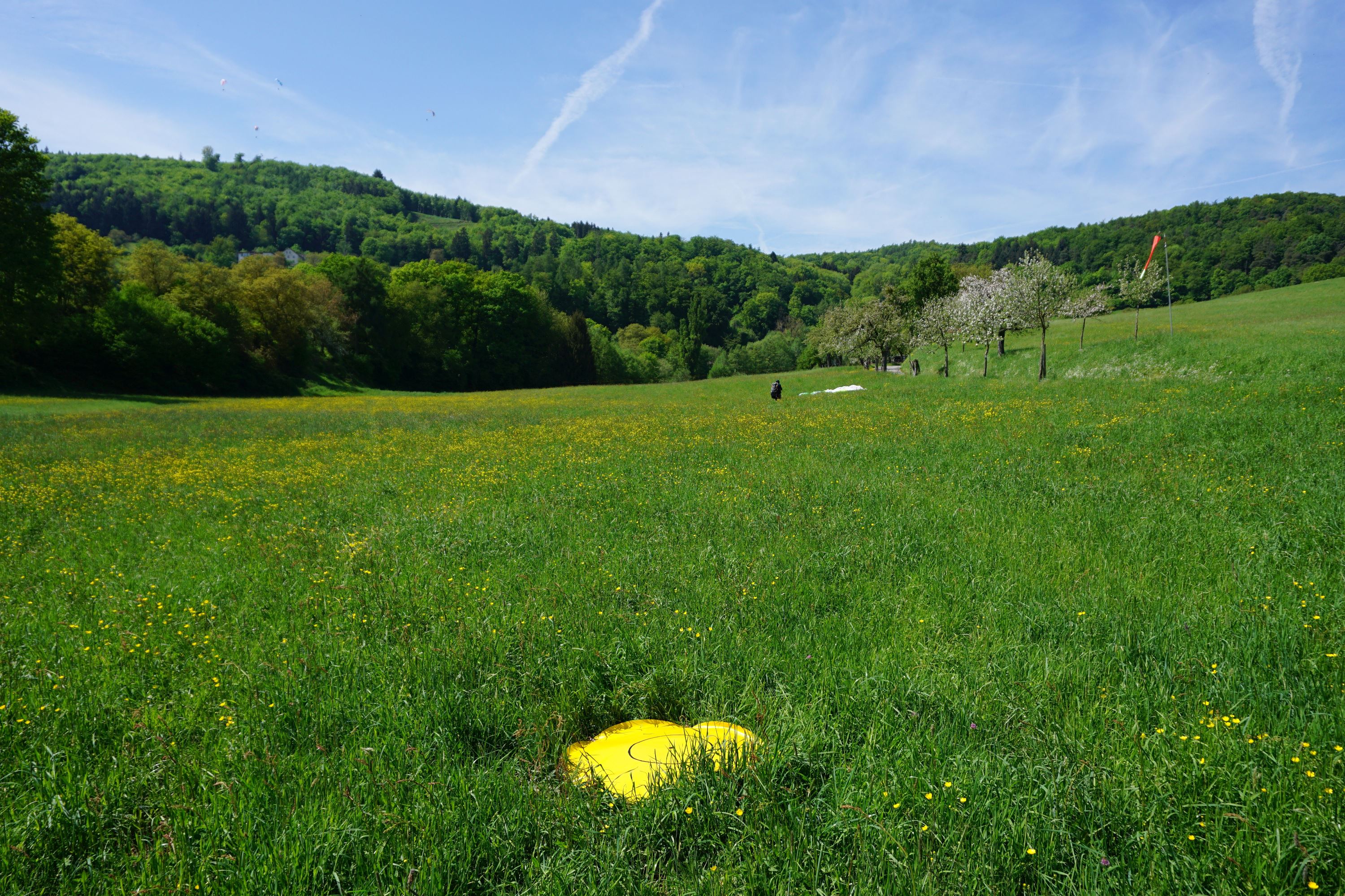 Leider kann man ihn daher bei dem momentan hohen Gras vom Startplatz aus nicht sehen; aber die Landewiese sollte man ja auch so schon kennen.
