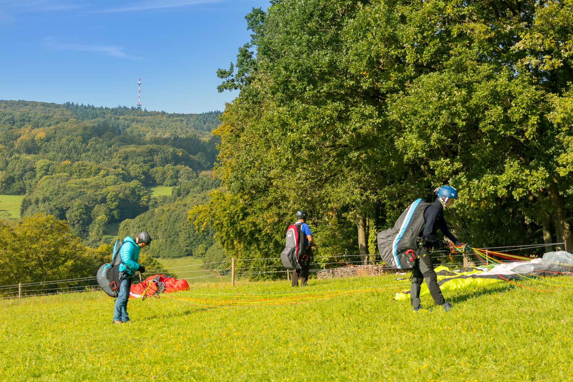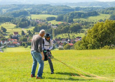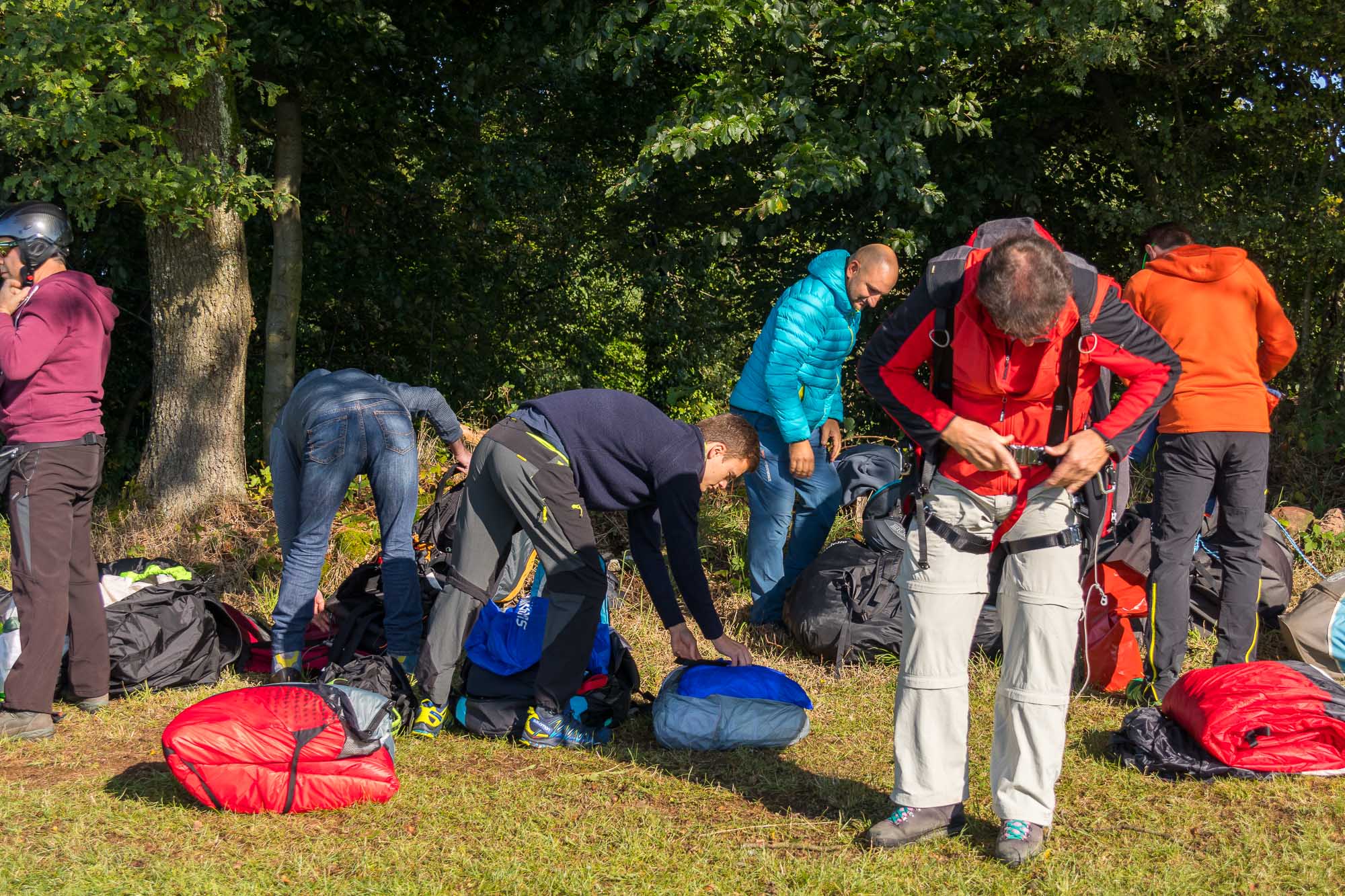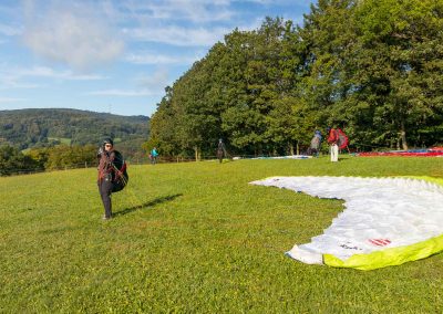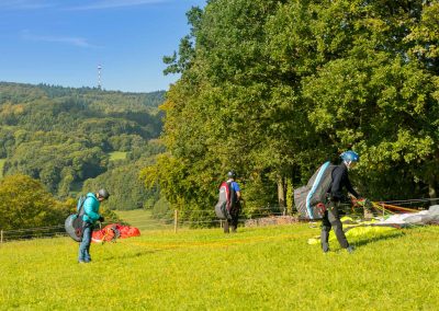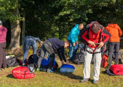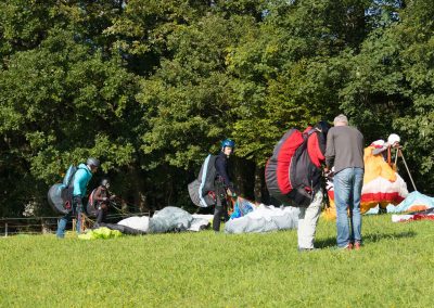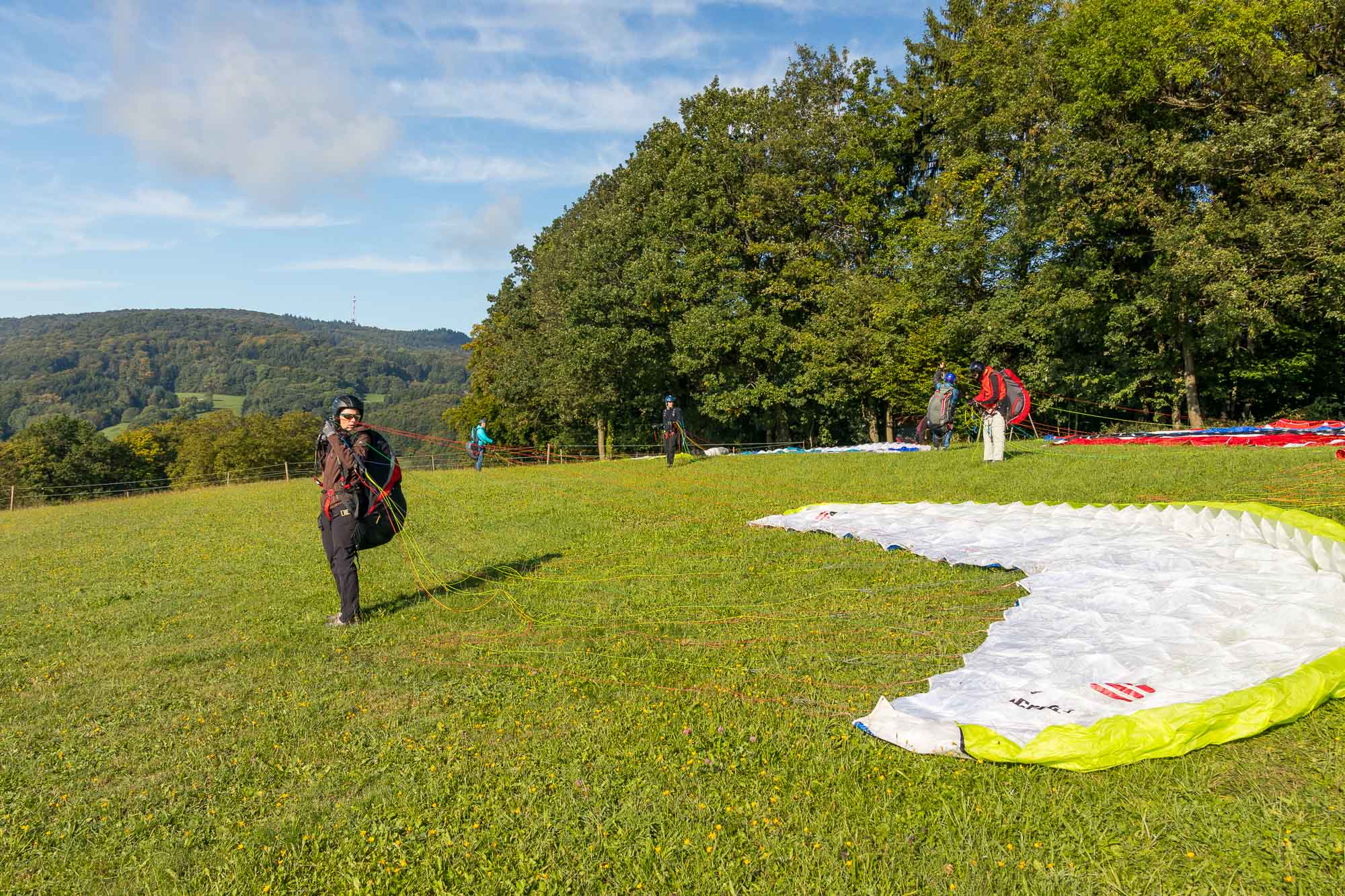 Unser drittes Starttraining ist zu Ende. Am Vorabend hat Michael Demel in lockerer Runde Ziele des Trainings erläutert und u.a. diese an Video Beispielen gezeigt. Am Samstag morgen um 9 Uhr ging es dann bei schönsten Frühherbstwetter auf unserem Übungsgelände in Lindenfels los. Ca. 20 Teilnehmer übten ihre Starttechnik, bekamen von Michael und Markus Vorschläge zur Korrektur um dann ihre Starttechnik zu verbessern. Geübt wurden ganz bewusste Startabbrüche und gezielt ruhige Starts und Schirmkontrolle. Die mentale Einstellung auf die einzelnen Startphasen, die notwendige Ruhe in den Vorgang einfließen zu lassen, war ein grundlegendes Ziel des Trainings.