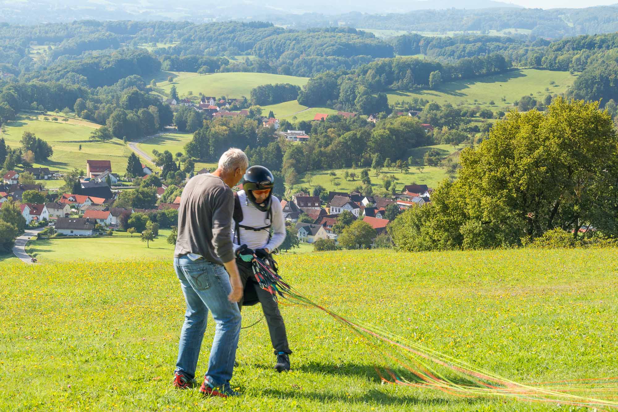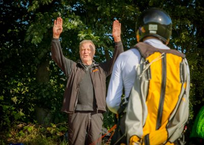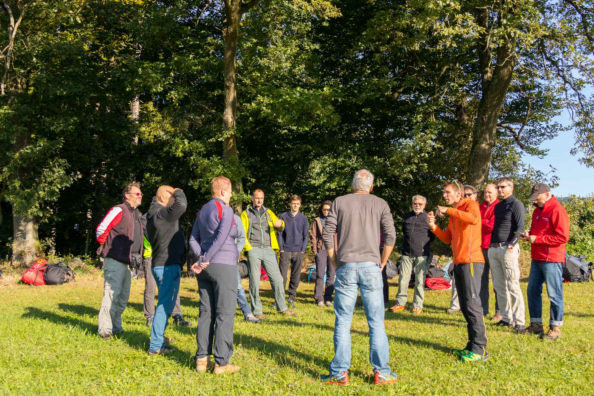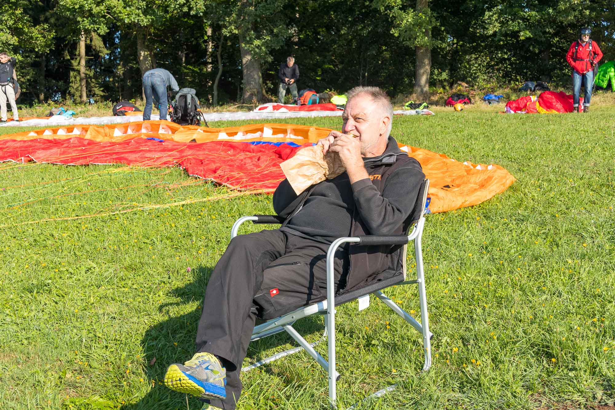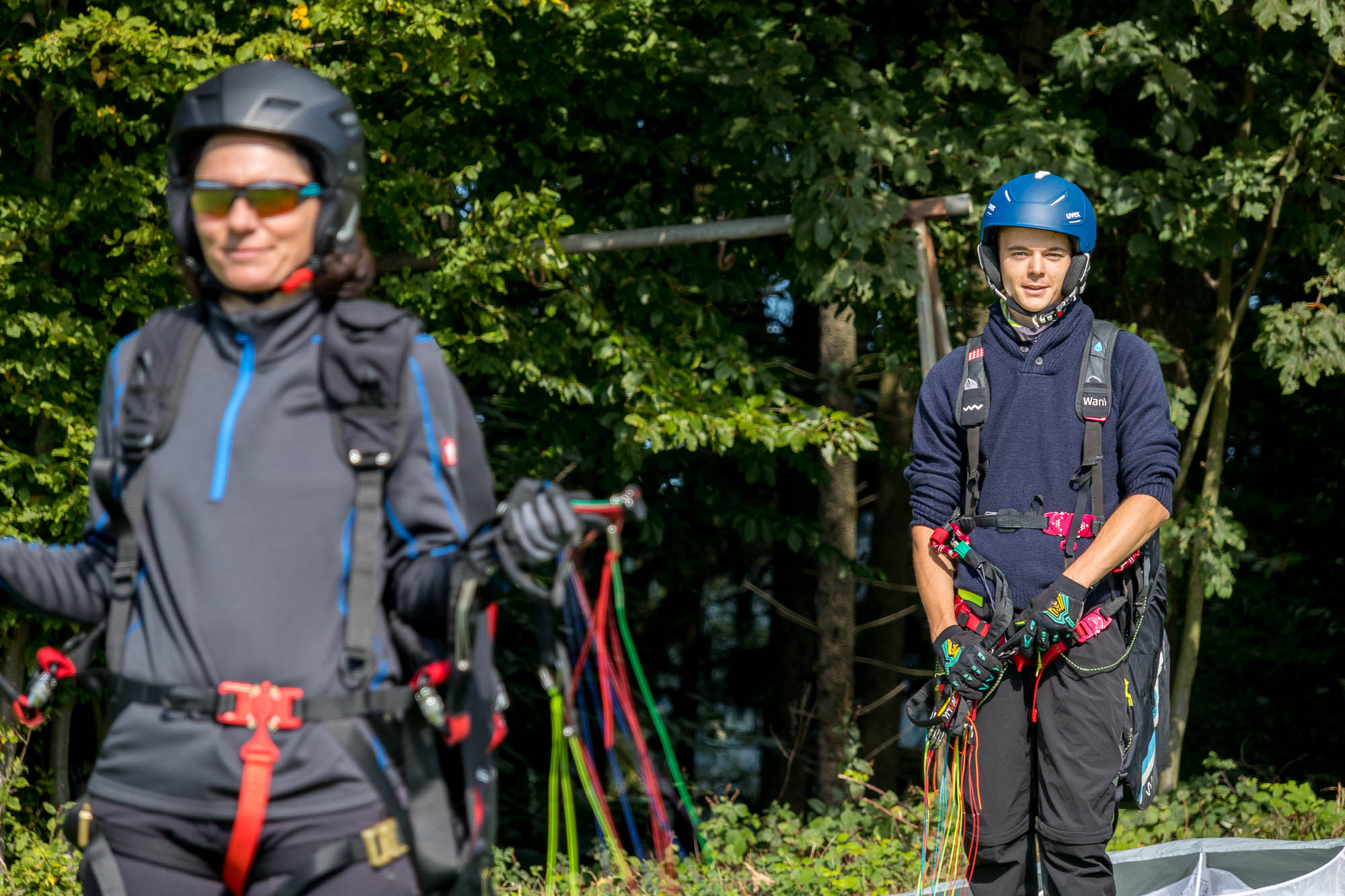 Unser drittes Starttraining ist zu Ende. Am Vorabend hat Michael Demel in lockerer Runde Ziele des Trainings erläutert und u.a. diese an Video Beispielen gezeigt. Am Samstag morgen um 9 Uhr ging es dann bei schönsten Frühherbstwetter auf unserem Übungsgelände in Lindenfels los. Ca. 20 Teilnehmer übten ihre Starttechnik, bekamen von Michael und Markus Vorschläge zur Korrektur um dann ihre Starttechnik zu verbessern. Geübt wurden ganz bewusste Startabbrüche und gezielt ruhige Starts und Schirmkontrolle. Die mentale Einstellung auf die einzelnen Startphasen, die notwendige Ruhe in den Vorgang einfließen zu lassen, war ein grundlegendes Ziel des Trainings.